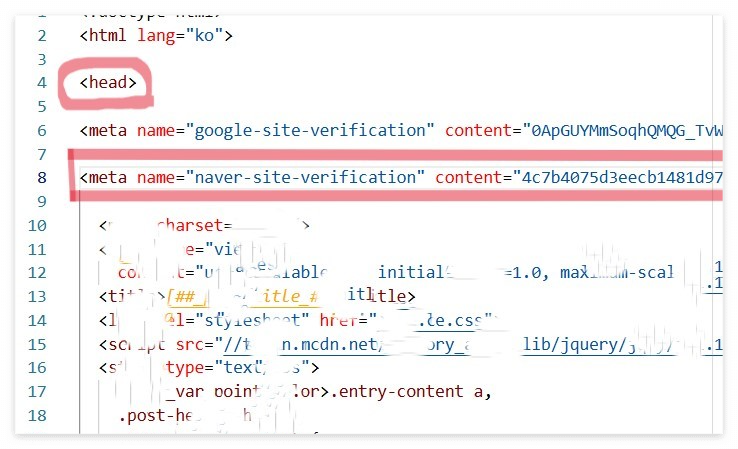 처음 보이는 <head> 태그 바로 아래에 복사한 코드를 붙여 넣고 적용시킨다.